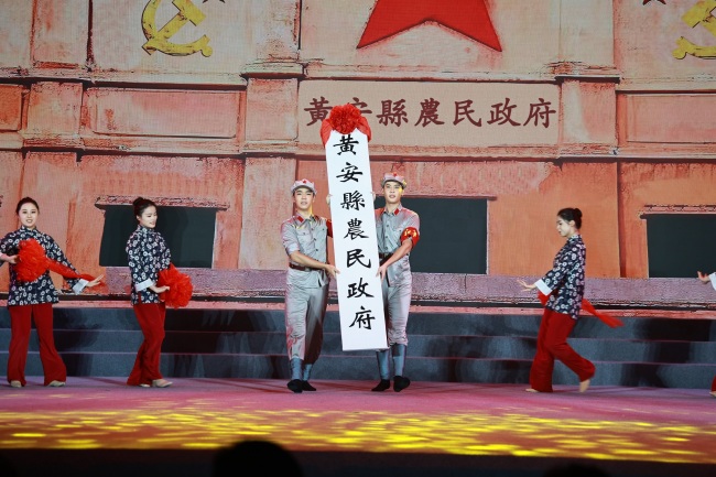 “八月桂花遍地开,鲜红的旗帜竖呀竖起来。敲锣又打鼓呀,张灯又结彩呀,光辉灿烂闪出新世界....”当耳熟能详的旋律响起,歌舞《八月桂花遍地开》瞬间点燃了全场气氛。师生们沉浸在欢快的节奏中,感受着红色文化的独特魅力。这首当年从大别山传唱至全国苏区的经典民歌,不仅以激扬的锣鼓唱出了人民紧跟党走的坚定决心,更以张灯结彩的喜悦,唱响了劳苦大众庆祝光明新生的澎湃心声。